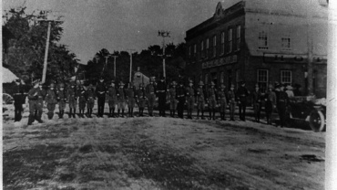 Millbrook Hockey Club Back left: Harold Nattress, Earl Soolheron, Percy Handley (no. 3), Ted Burnham, Bob Doak (dark mustache), Tom Leach (white mustache) Neal Morrison, Wally Mitchell. Back to Image Library